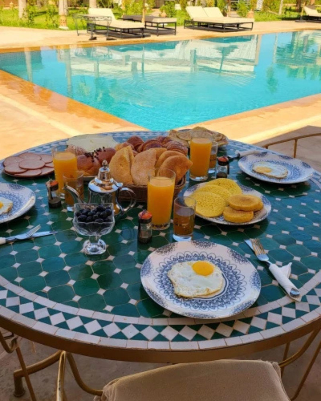 Après une journée d’exploration à travers l’histoire vibrante de Marrakech, retrouvez le calme et la sérénité en vous prélassant au bord de la piscine des Jardins de Lina et Léa. Profitez de ce havre de tranquillité pour vous détendre et apprécier la douceur de vivre marocaine, loin de l’agitation de la médina.